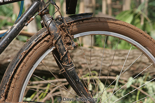Later, the mud just starts to build up as we ride and push our way through ox-cart village roads.